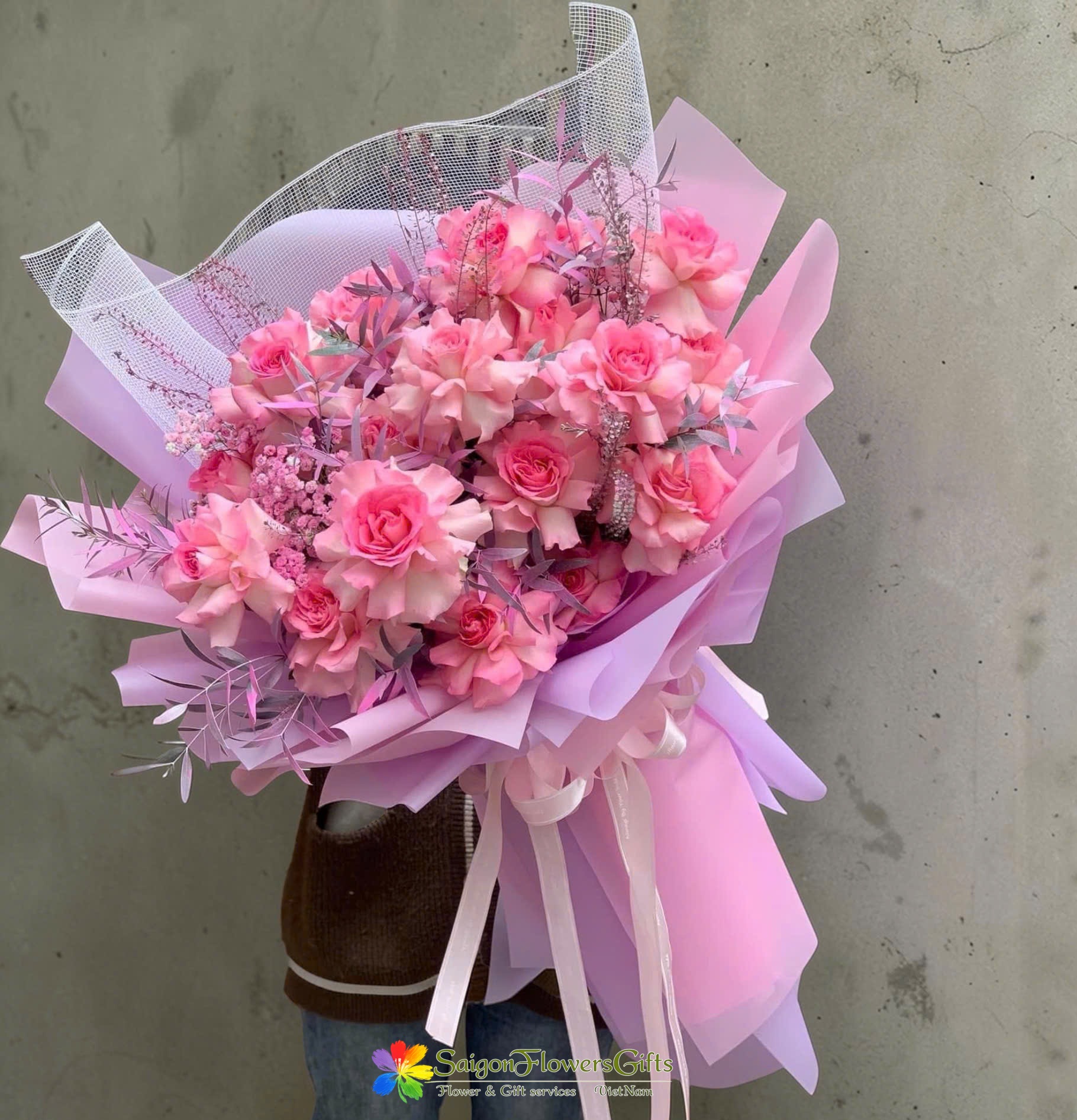 send pink roses bouquet to saigon